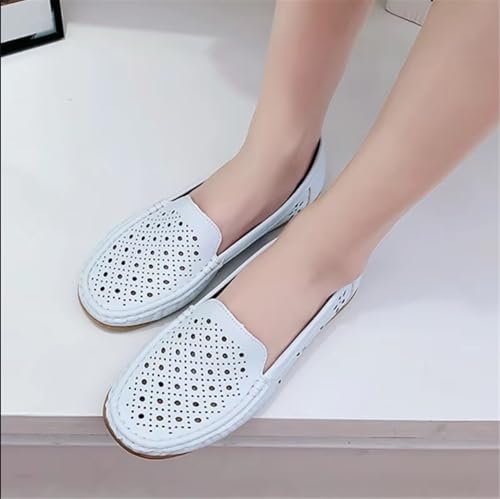 CLSQLXYJZC Loafers for Women, Comfy Summer Breathable Hollow Slip-On Leather Nurse Shoes for Women's, Fashion Non-Slip Flats Driving Working Moccasin, for Medical Workers, Nurse, Doctors 5
