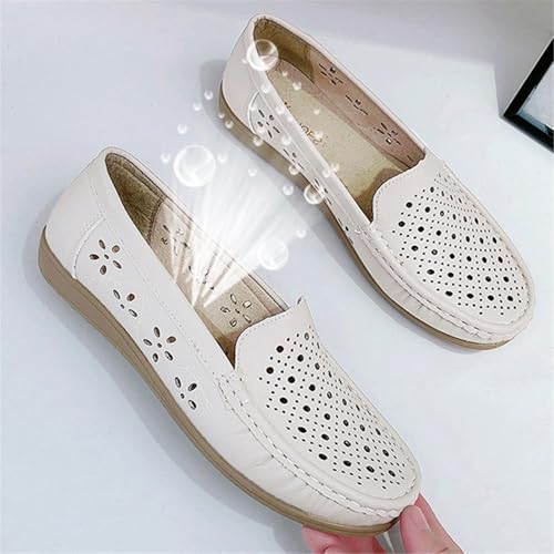 HOT ! CLSQLXYJZC Loafers for Women, Comfy Summer Breathable Hollow Slip-On Leather Nurse Shoes for Women's, Fashion Non-Slip Flats Driving Working Moccasin, for Medical Workers, Nurse, Doctors