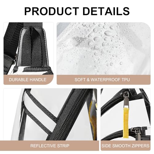 • WELL MADE - Shrrie clear crossbody bag is made of waterproof, tear-resistant TPU which is sustainable, won't yellow or harden over time, and can withstand high or low temperatures. The one-sided zipper allows for easy access to your belongings. Reflective strip design makes you easy to be noticed when traveling at nigh.