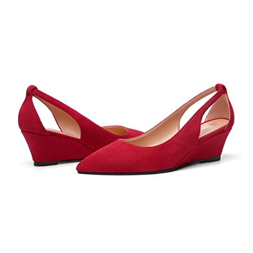 MERRORI Womens Casual Office Pointed Toe Slip On Suede Wedge Low Heel Pumps Shoes 2 Inch 1
