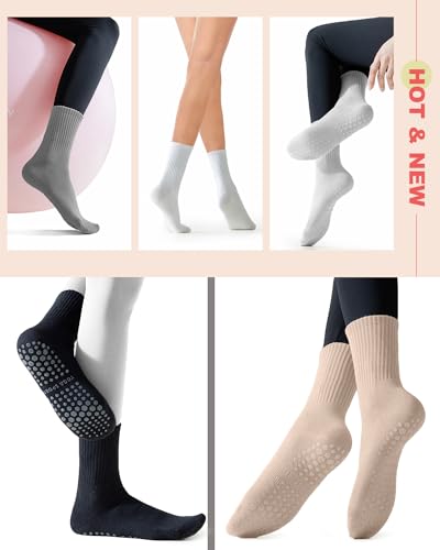 HOT ! 5 Pairs Pilates Grip Socks Yoga Socks with Grips for Women, Non-Slip Athletic Socks for Ballet, Dance, Workout, Hospital