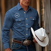 Men's American / USA Patriotic Work Shirt Western Shirt Cargo Shirt Long Sleeve Casual Tactical Sports & Outdoor Going out Winter Spring &  Fall Turndown Print Black White Army Green Blue 6