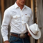 More information about Men's American / USA Patriotic Work Shirt Western Shirt Cargo Shirt Long Sleeve Casual Tactical Sports & Outdoor Going out Winter Spring & Fall Turndown Print Black White Army Green Blue