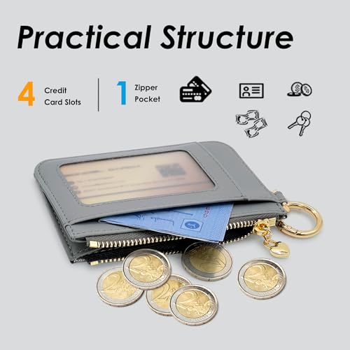 M-Plateau Key Chain Wallet Women, Credit Card Holder for Women with Metal Key Chain Ring for Car Keys,Ladies Mini Purse with ID Window and Zipper Pocket (Grey) 4