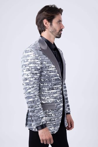 Barabas Men's Shiny Sequin Pattern Long Sleeve Blazer 4BL42 Black M 7