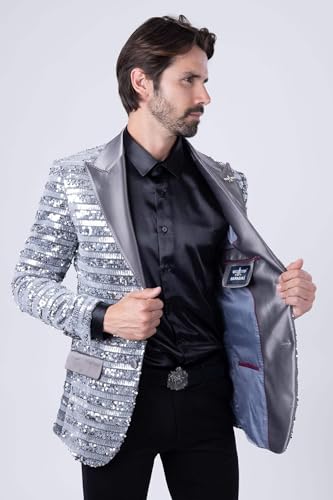 HOT ! Barabas Men's Shiny Sequin Pattern Long Sleeve Blazer 4BL42 Black M
