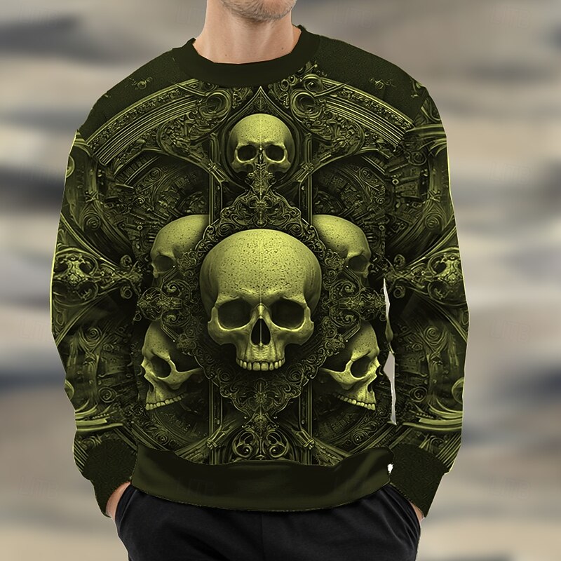 Halloween Men's Skull Sweatshirt Casual Long Sleeve Crew Neck Black Yellow Crewneck 3D Print 3D All Seasons Designer 11