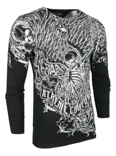 Xtreme Couture by Affliction Mens Thermal T-Shirt Accuser Skull Biker MMA Gym$58 2