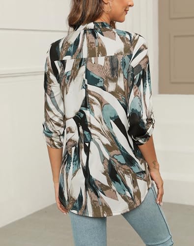 Zattcas Womens Floral Printed Tunic Shirts 3/4 Roll Sleeve Notch Neck Tunic Top 3