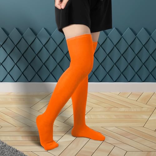 1 Pair Thigh High Socks, Cotton Soft Knee High Long Stockings Leg Warmers for Women Girls Christmas Cosplay (Orange) 1