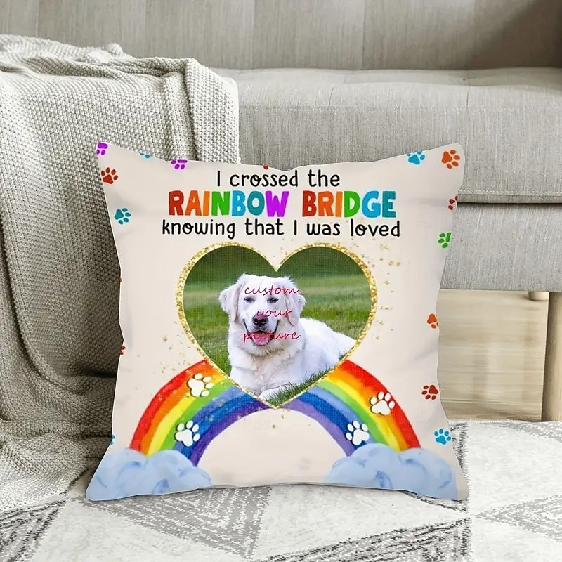 Custom Pet Photo Memorial Pillow Cover Cushion Cover Throw Pillow Sympathy Gift Personalized Memorial Gifts Cross Rainbow Bridge 1