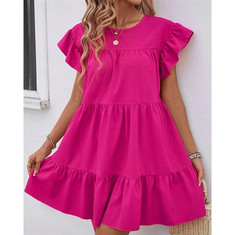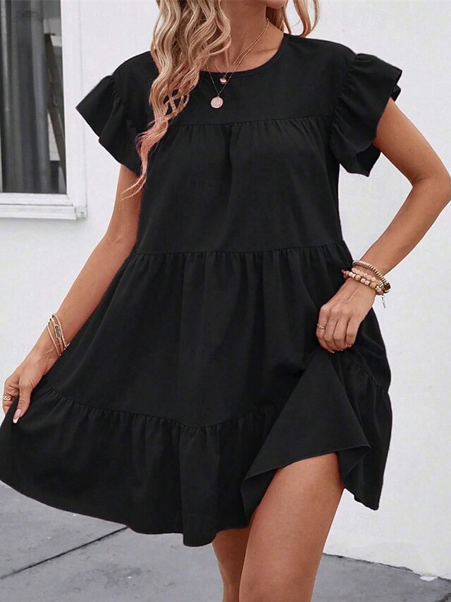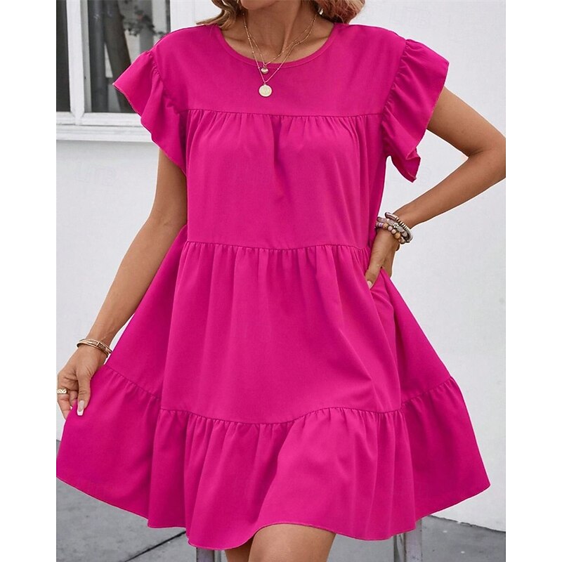 More information about Women's Mini Dress Casual Dress Summer Dress Elegant Fashion Outdoor Holiday Date Regular Fit Plain Short Sleeve Crew Neck Black Blue Rose Red Summer Spring