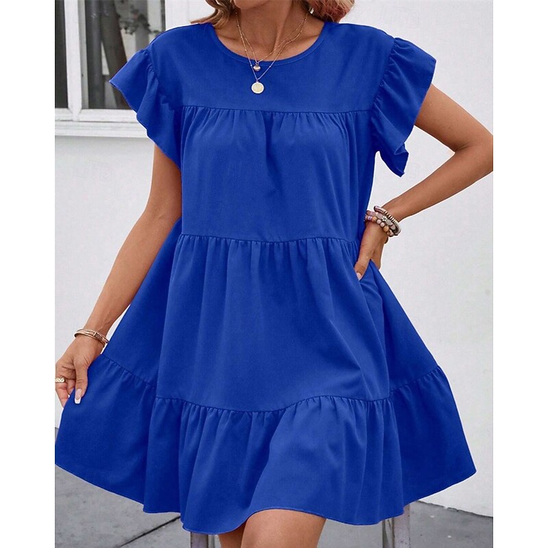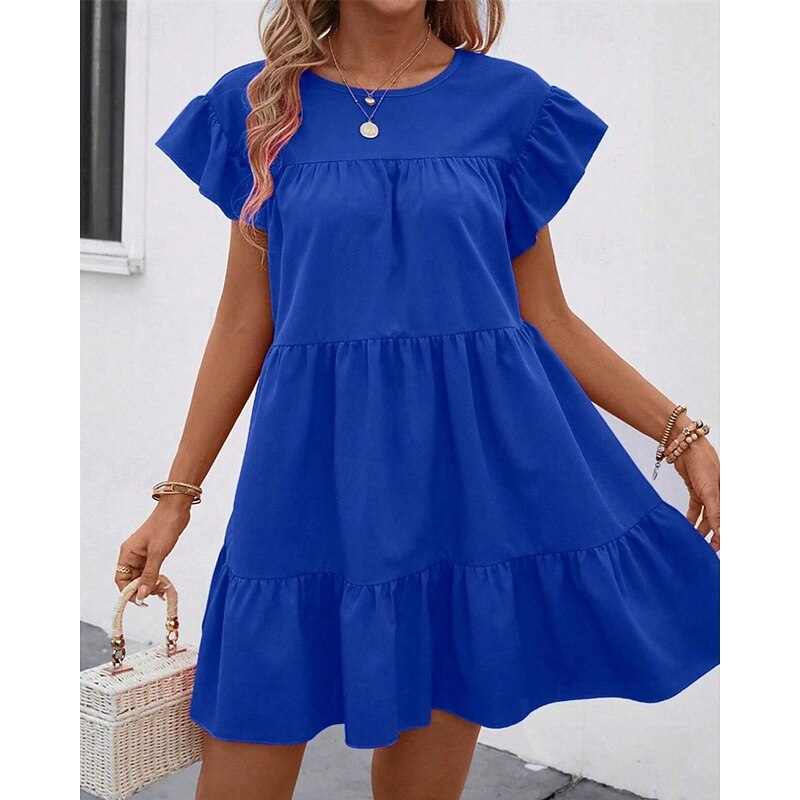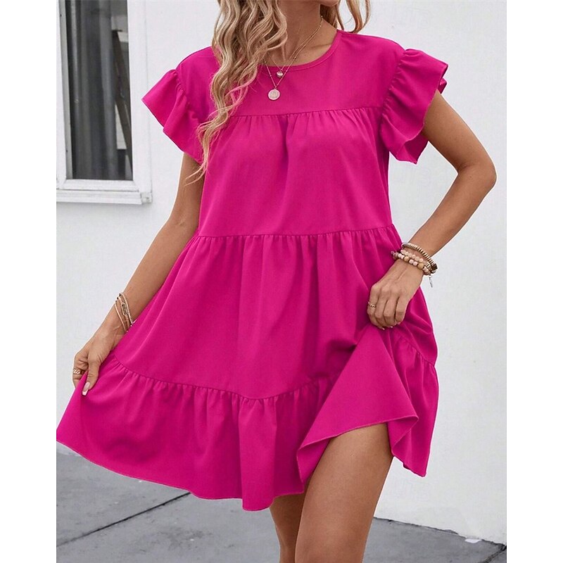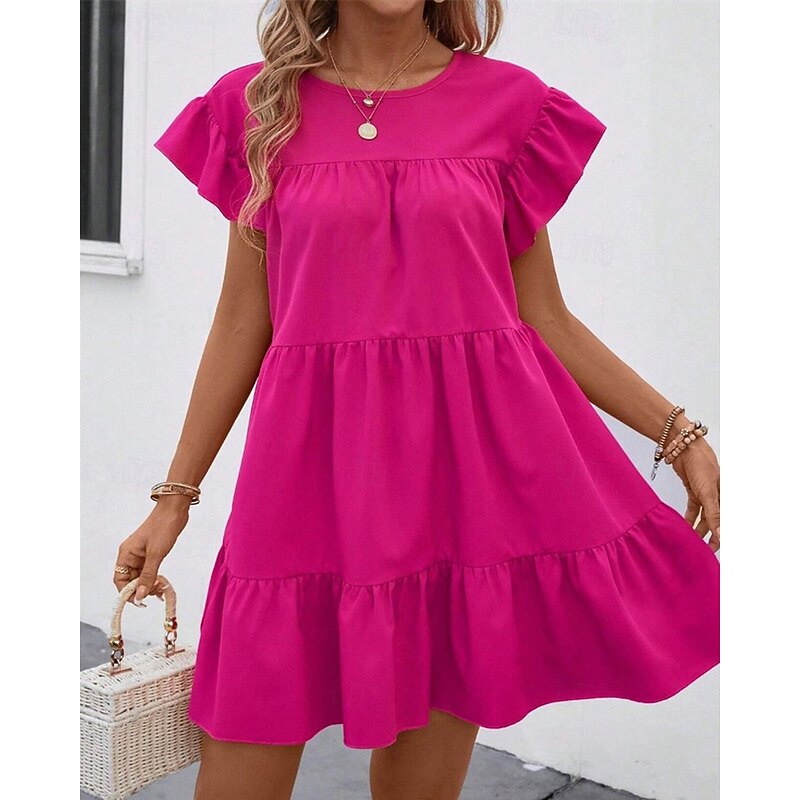 HOT ! Women's Mini Dress Casual Dress Summer Dress Elegant Fashion Outdoor Holiday Date Regular Fit Plain Short Sleeve Crew Neck Black Blue Rose Red Summer Spring