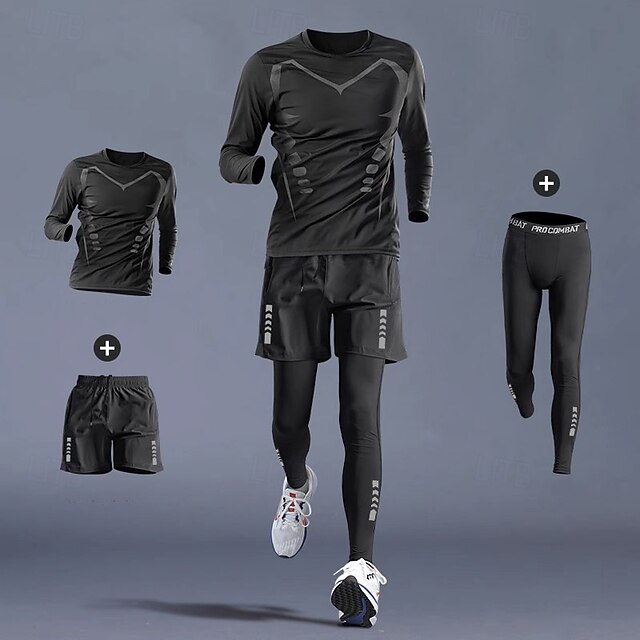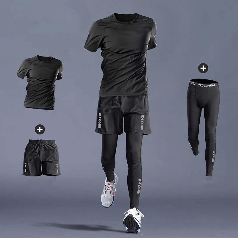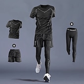 More information about Men's Workout Suits 3 Piece Sports Set Solid Colored Clothing Suit Summer 1# 2# Basketball Running Yoga High Waist Quick Dry Short Sleeve Sport Activewear Micro-elastic Regular Fit