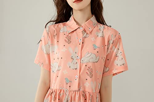 • Features: cartoon bunny print, short sleeve, high waist, loose style, button closure. Japanese style summer mini dress, Comfy casual green dress, Short sleeve cute pink dress