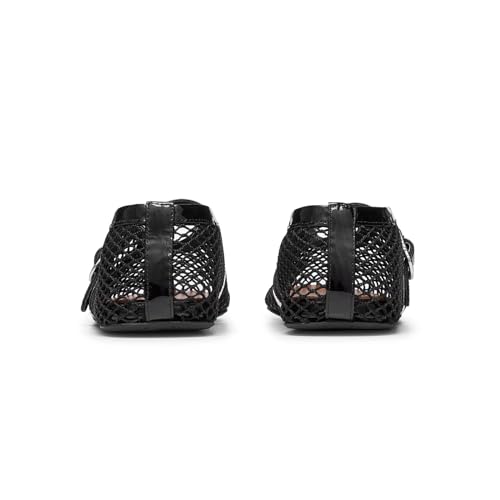 olomisa Mesh Ballet Flats for Women Fishnet Ballerina Flats with Adjustable Mary Jane Round Toe Buckle Strappy Shoes 4