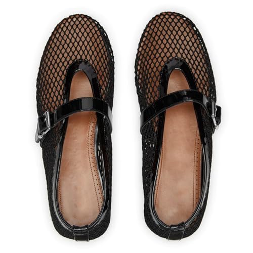 HOT ! olomisa Mesh Ballet Flats for Women Fishnet Ballerina Flats with Adjustable Mary Jane Round Toe Buckle Strappy Shoes
