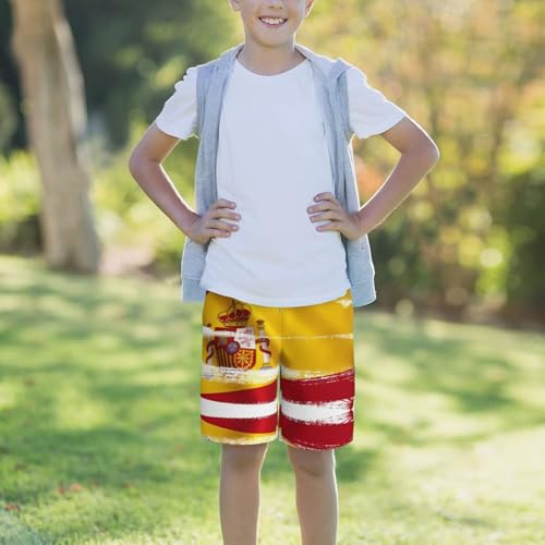 HOT ! Spain Flag Youth Beach Pants, Soft and Breathable, with Drawstring Waist, Suitable for Sports and Leisure.