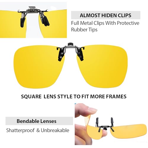 TJUTR Night Driving Clip On Glasses, Polarized Anti Glare Night Vision Glasses to Wear Over Prescription Glasses 6