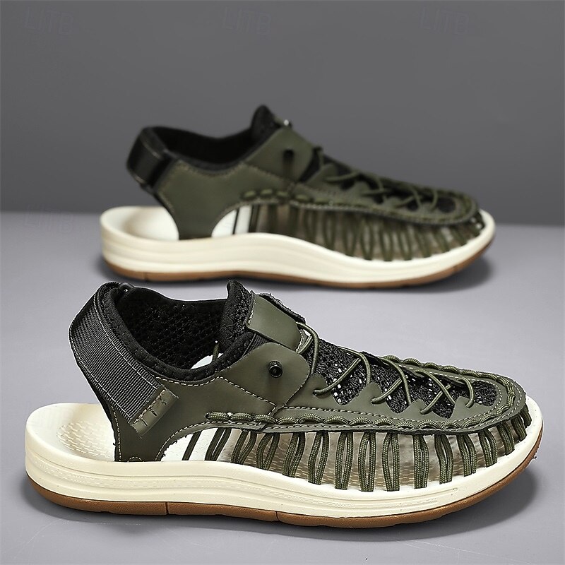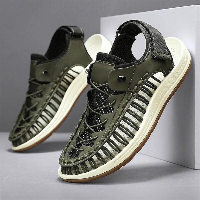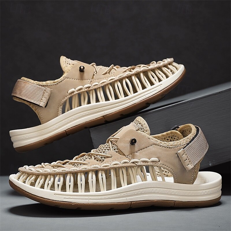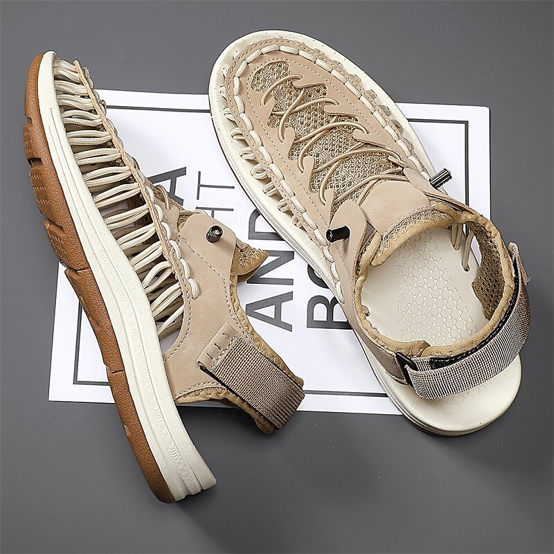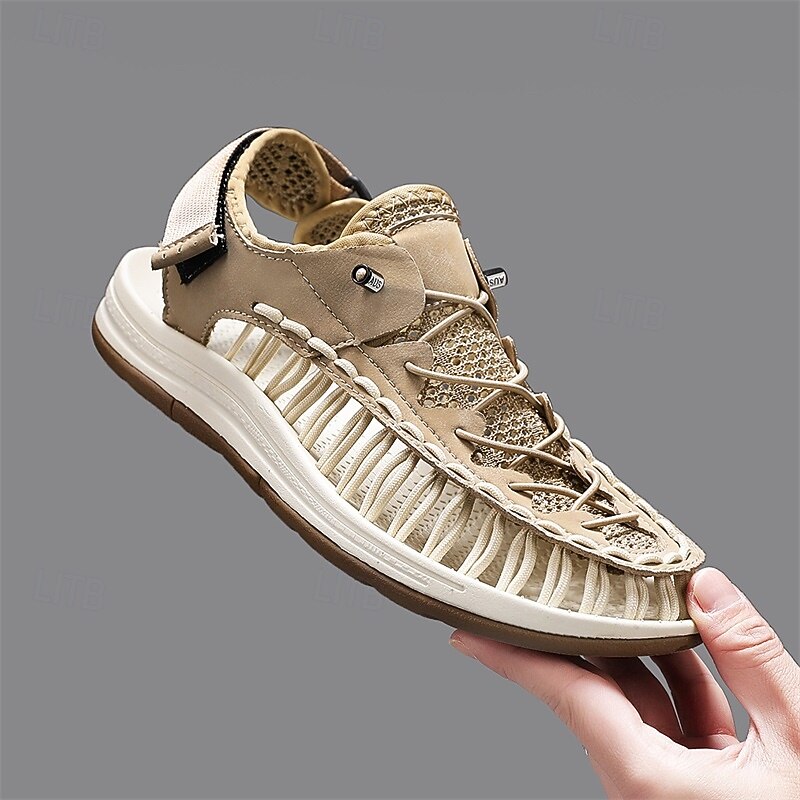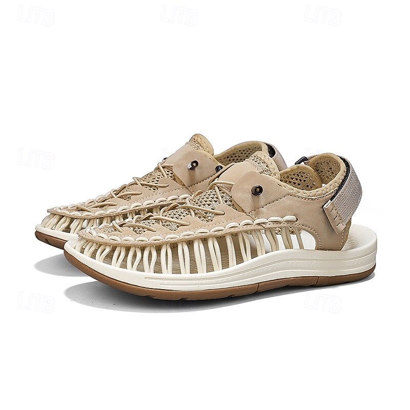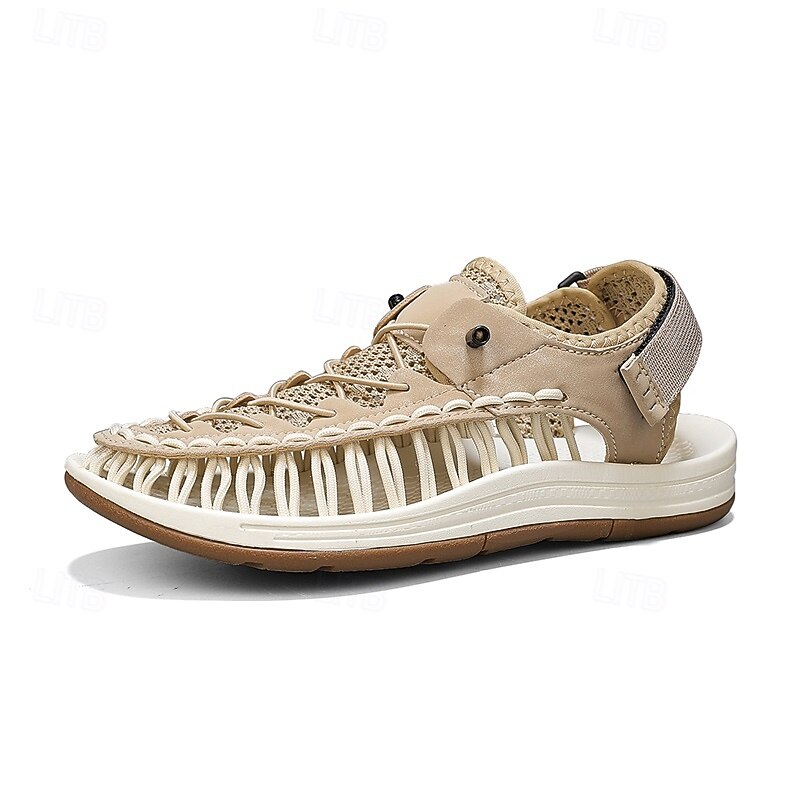 Men's Sneakers Beige and Tan Athletic Shoes with Knitted Upper and Flexible Sole for Outdoor Activities and Daily Use 45