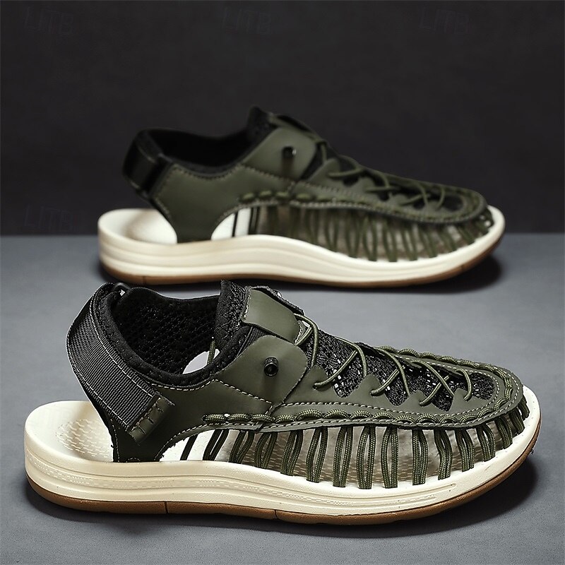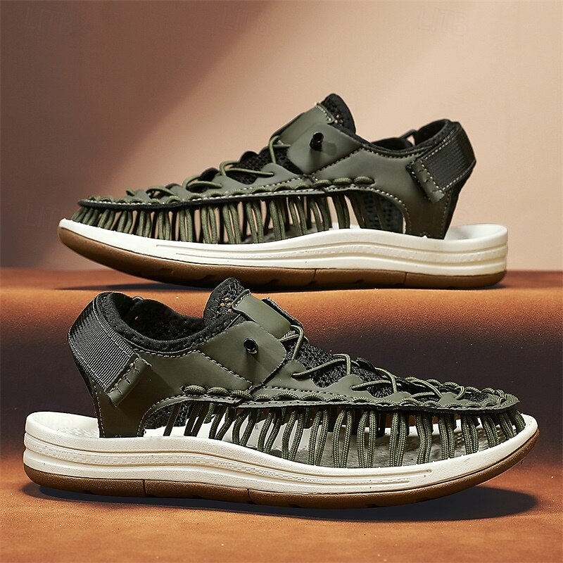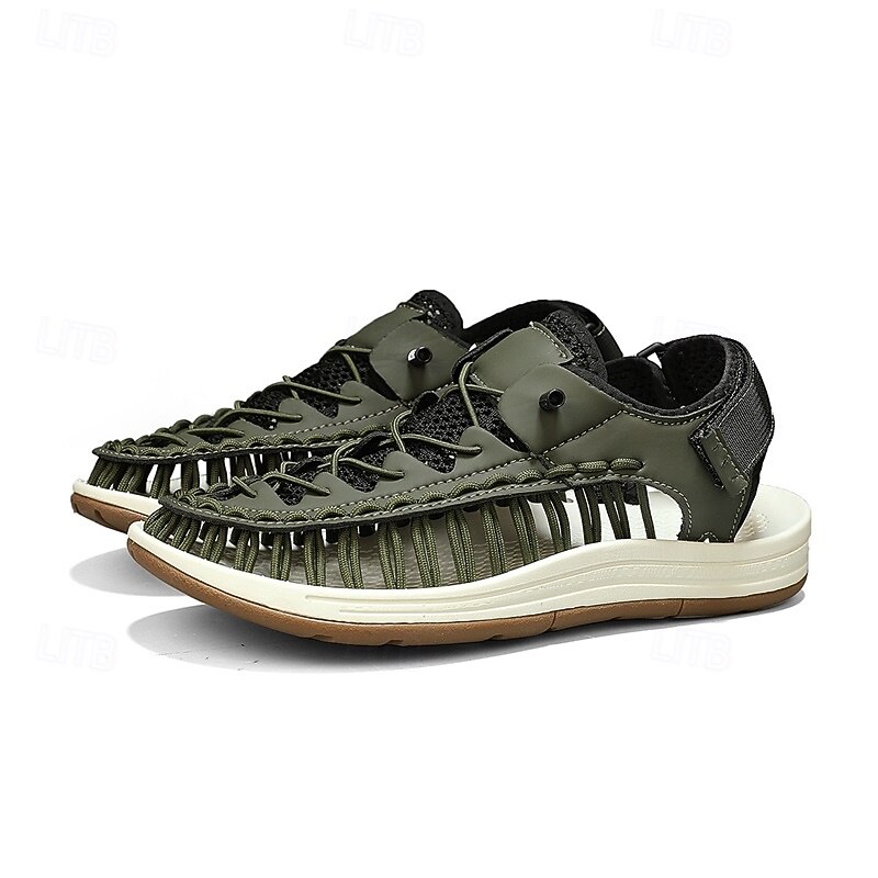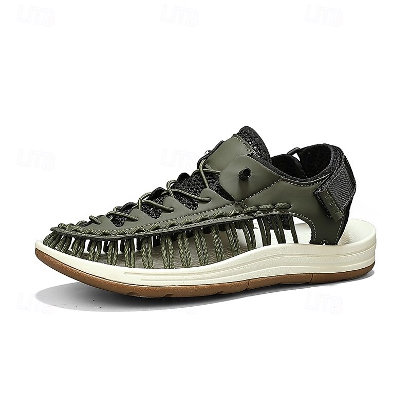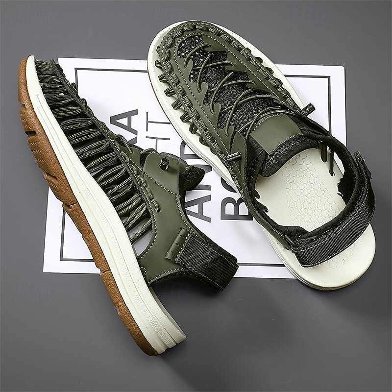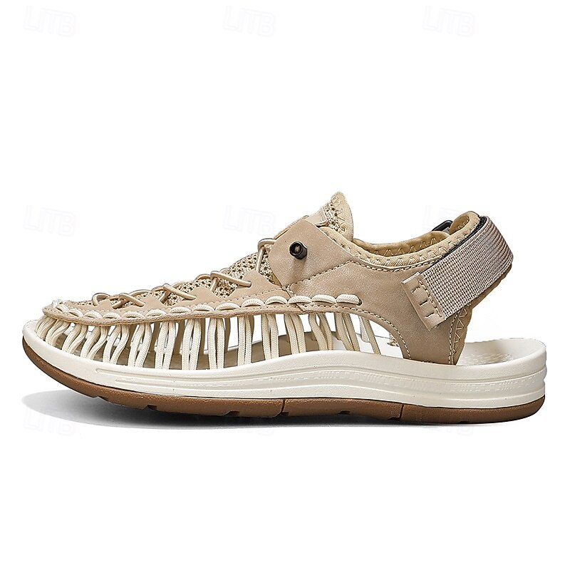 Men's Sneakers Beige and Tan Athletic Shoes with Knitted Upper and Flexible Sole for Outdoor Activities and Daily Use 42
