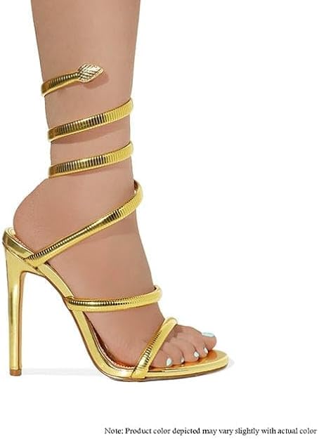 HOT ! Liliana Nikkia-223 Womens Open Round Toe Leg Spiral Wrap Around Ankle Strap Stiletto Heel Sandal