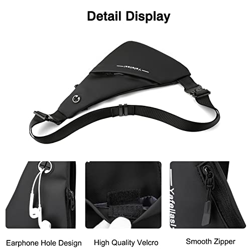 • 【Water repellent & Scratch resistant Fabric】 - It is made of high quality polyester material, which is tear resistant & water resistant. The sturdy SBS metal zippers went up and down nicely. Plus, the reinforced seams and delicate sewing craft can bring you an excellent outdoor experience. This is a small chest bag with earphone hole, a handy companion for keeping travel essentials.