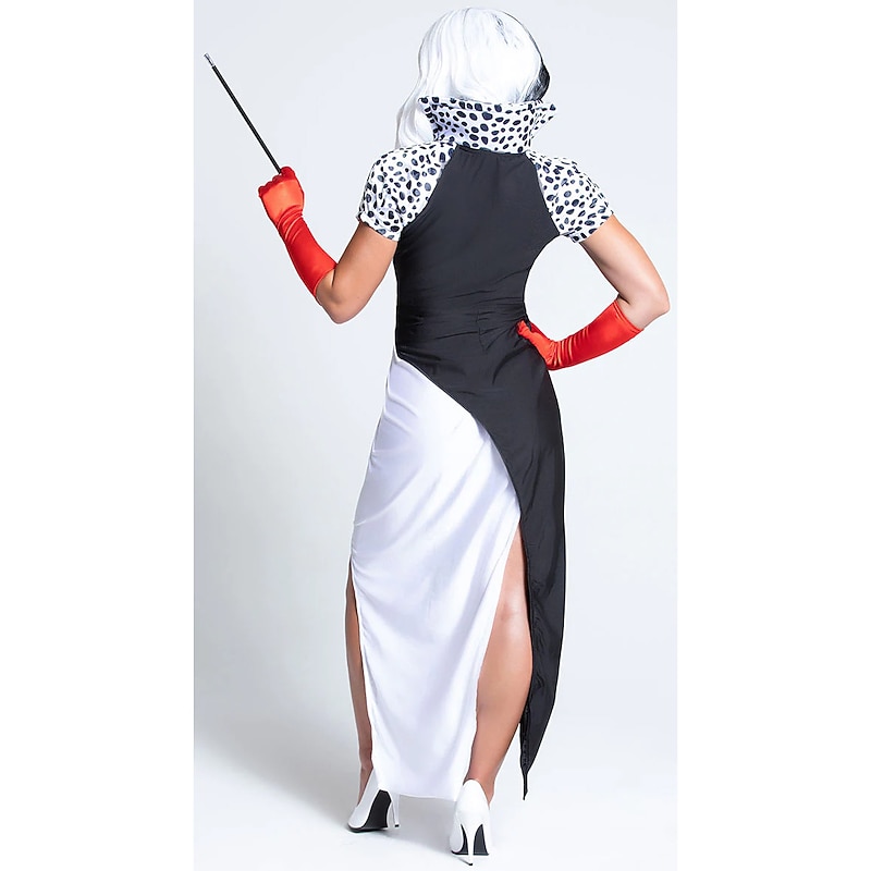 HOT ! One Hundred and One Dalmatians Cruella De Vil Dress Masquerade Vacation Movie Cosplay for Women's Adults' Carnival Masquerade