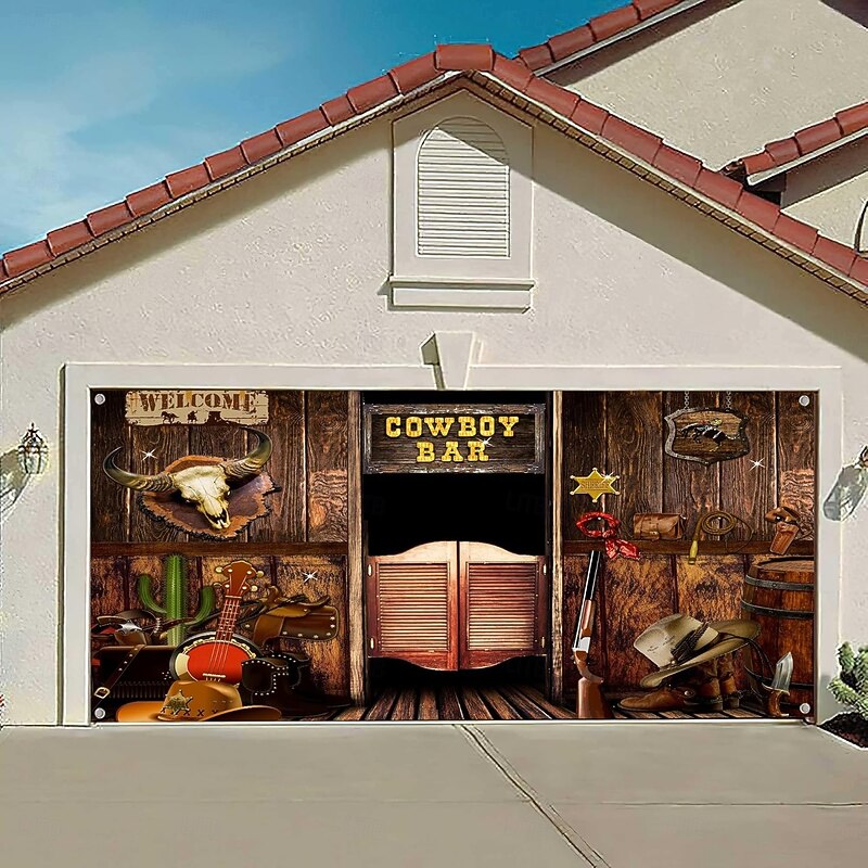 HOT ! Tapestry Garage Door Cover Large Hanging Backdrop Cowboy Barn Bull Skull Rustic Cottagecore 3D Party Outdoor Shooting Backgrounds Front Door Home Decor