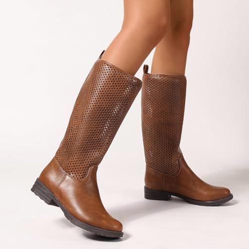 Mid-Calf Quilted Riding Boots for Women – Low Heel Fall Boots with Buckle Detail and Side Zipper 5
