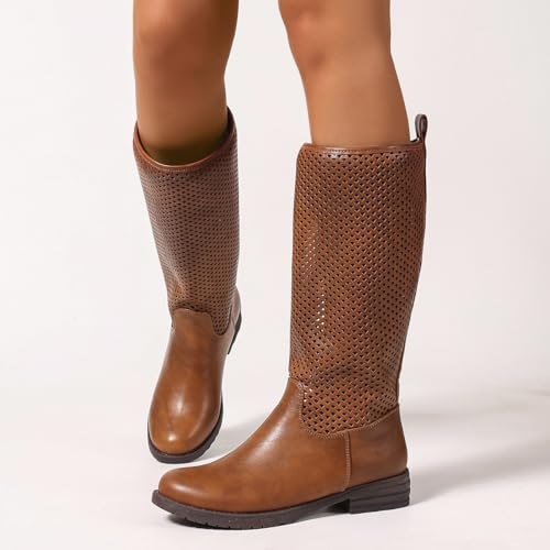 Mid-Calf Quilted Riding Boots for Women – Low Heel Fall Boots with Buckle Detail and Side Zipper 6