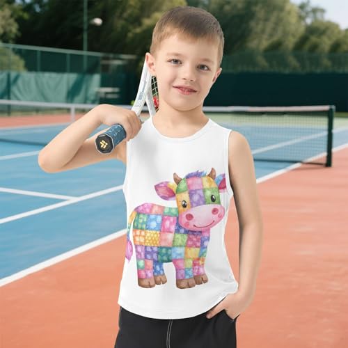 Patchwork Cow Boys Tank Tops Toddler Boys' Assorted Sleeveless Tank Tops for Sports,3T 4