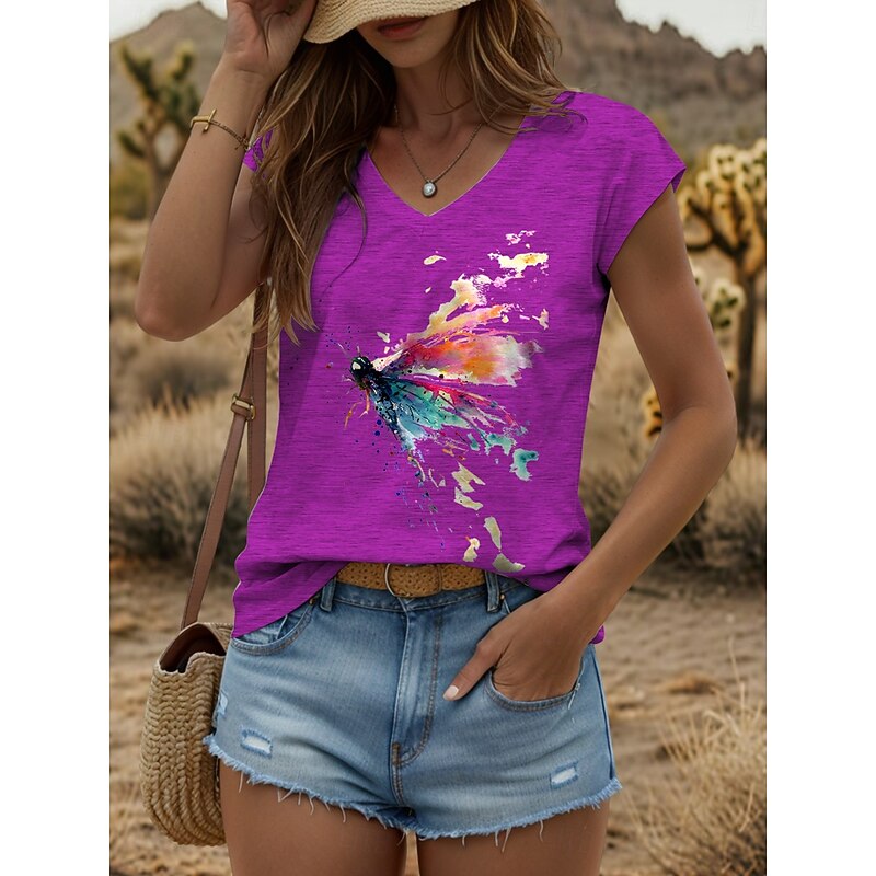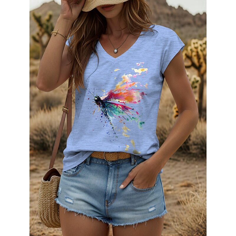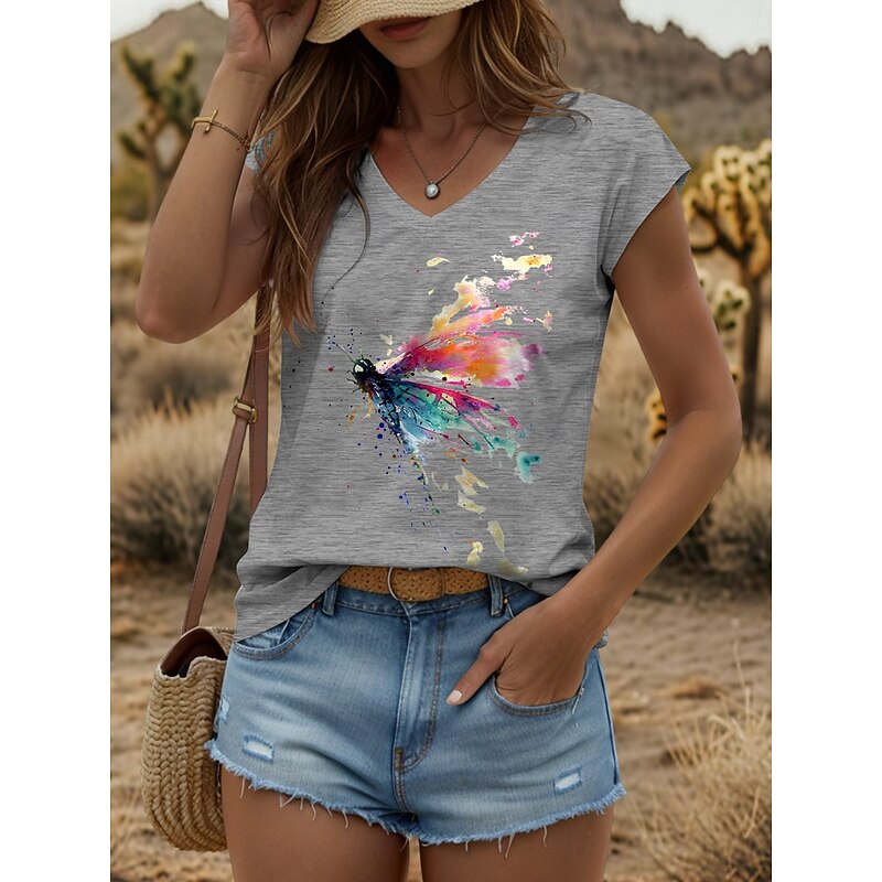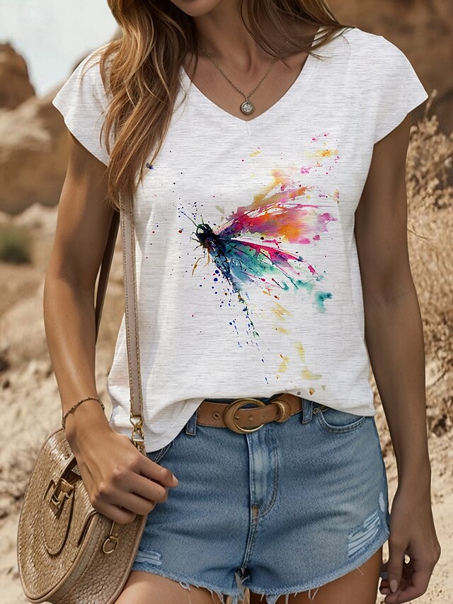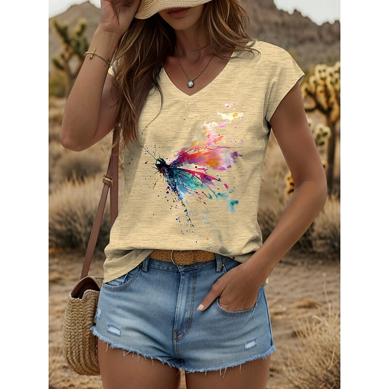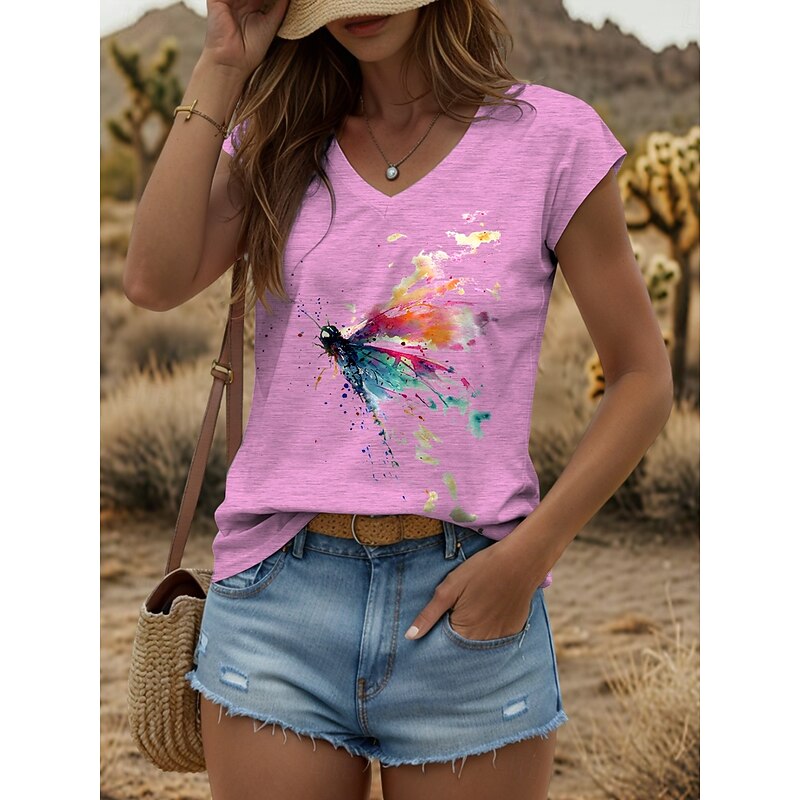 HOT ! Women's Graphic Animal Butterfly Camisole Tank Top Vintage Tropical Stylish Sleeveless Short Sleeve V Neck Regular Tops Daily Print Black White Yellow Pink Blue Summer Spring