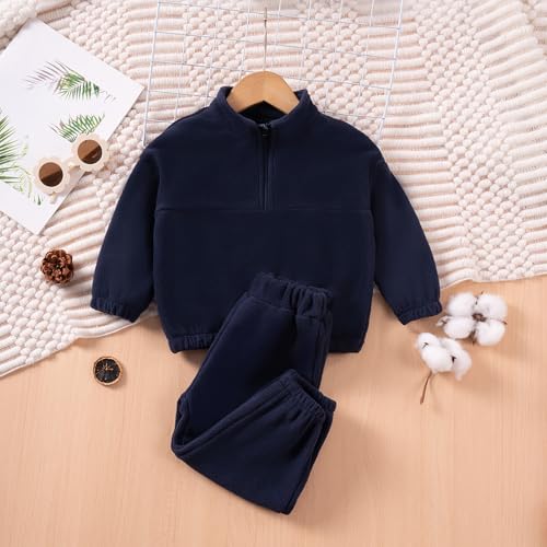 Toddler Boy Girl 2 Piece Outfits Fleece Sweatsuit Half Zip Pullover Track Suit Jogger Sweatshirt and Sweatpants Matching Set 3