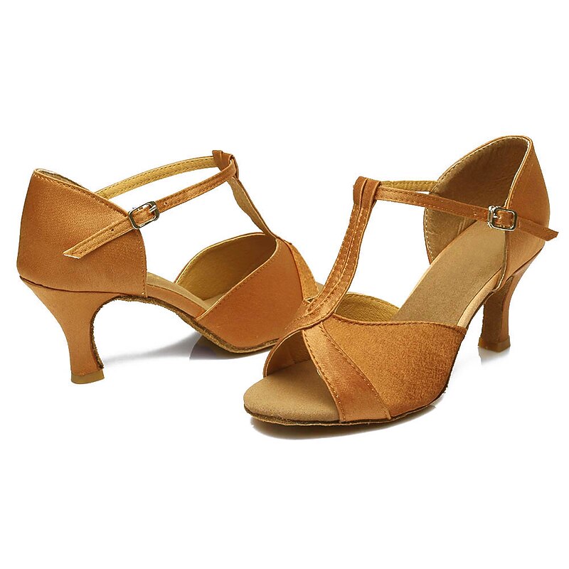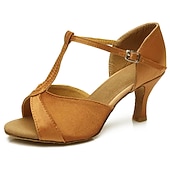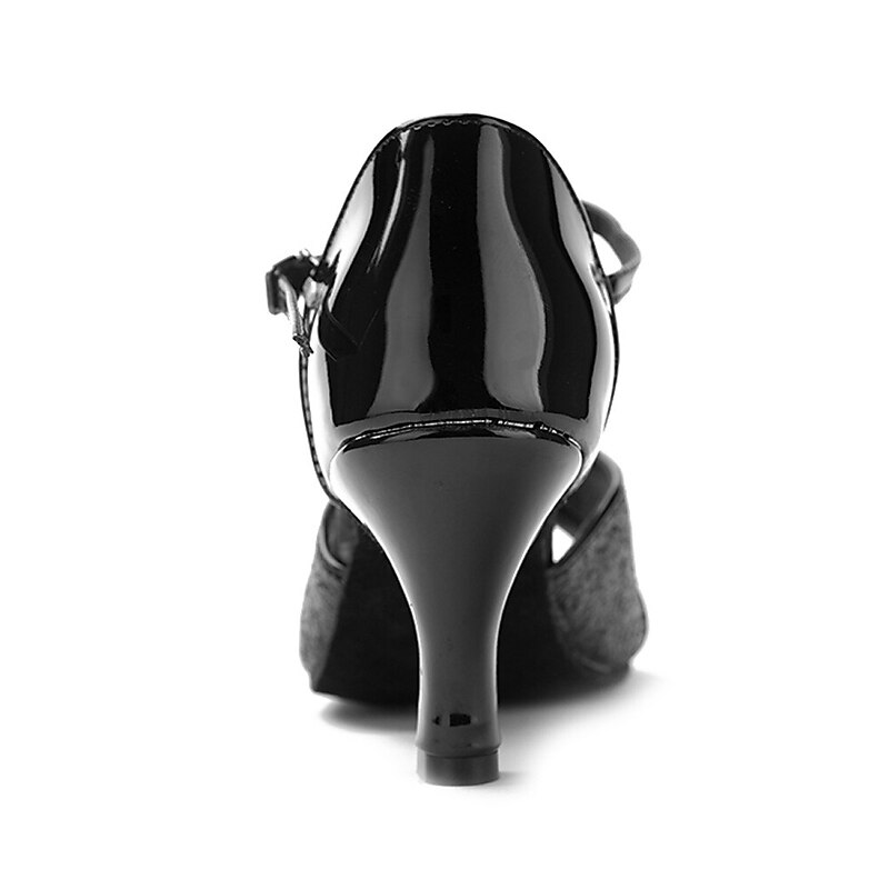 Featuring a timeless T-strap design, these shoes provide excellent support and a chic appearance. The Cuban heel adds a touch of elegance while providing stability, making them perfect for salsa, Latin dance, or ballroom. The enclosed toe shape offers comfort and a secure fit during your routines.