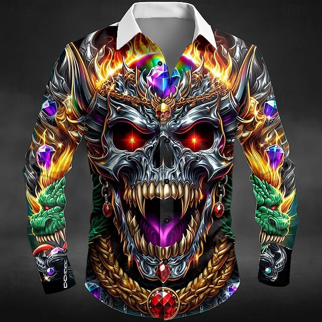 $25.99 - Halloween Men's Skull Dragon Flame Shirt Button Up Shirt Long Sleeve Dark Punk Gothic Style Outdoor Holiday Summer Spring Turndown 3D Print Collared Shirts Purple Orange Green 2025. Shop for cheap Halloween Shirts online? Buy at lightinthebox.com on sale today!