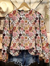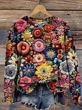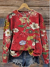 More information about Women's Pullover Sweatshirt Floral Graphic Warm Active Vintage Long Sleeve Crew Neck Regular Tops Street Dailywear Casual Print Black Red Blue Purple Orange Spring Fall Winter