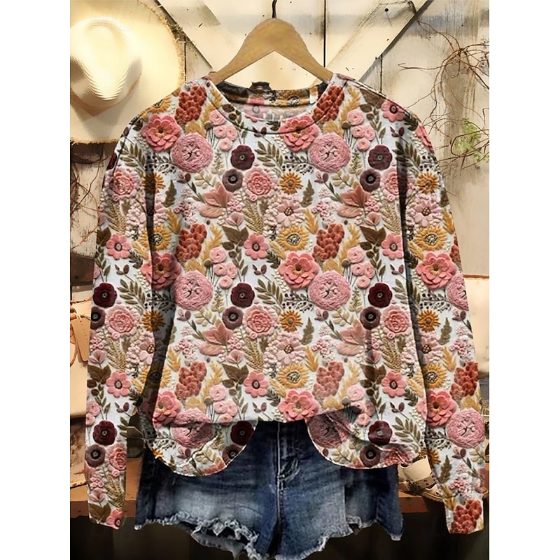 Women's Pullover Sweatshirt Floral Graphic Warm Active Vintage Long Sleeve Crew Neck Regular Tops Street Dailywear Casual Print Black Red Blue Purple Orange Spring Fall Winter 11