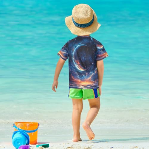 Kids Swimsuit Moon Outer Space Galaxy Sunscreen T-Shirts Swimwear Sets UPF 50+ 2