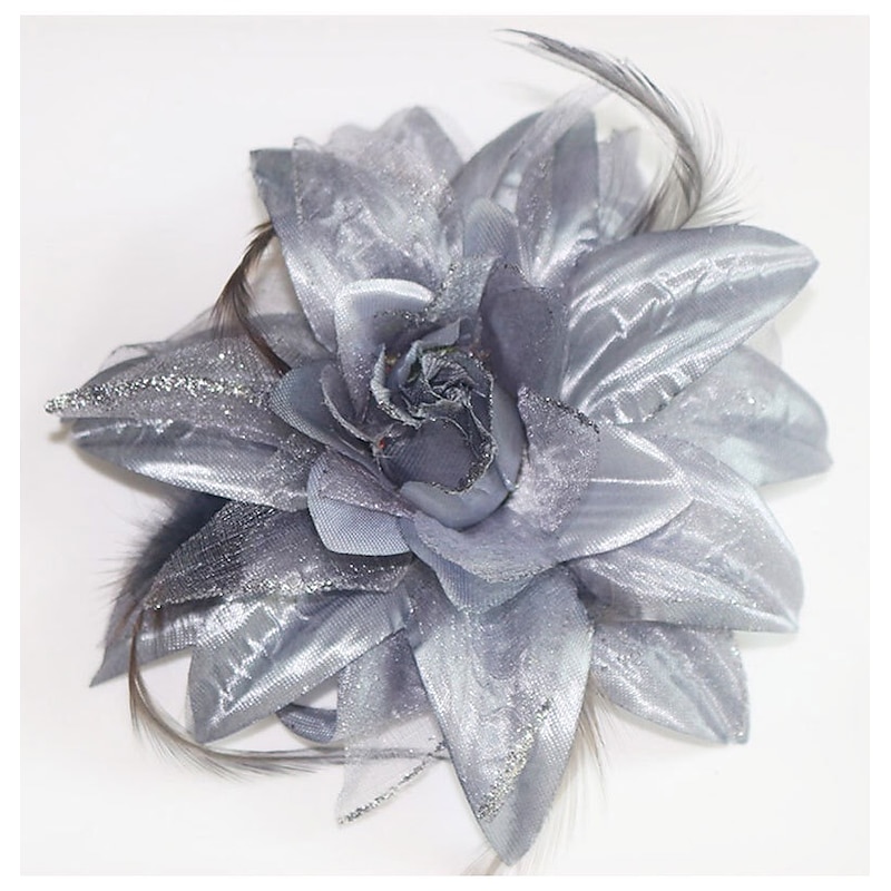 Highlights - Entirely handmade, from the preparation of the fabric to the finishing touches. - Versatile, with a combination brooch pin and hair clip backing. - Can be worn in multiple ways, clipped in hair or pinned to garments and accessories. - The perfect accessory to add a touch of elegance and creativity to any outfit.