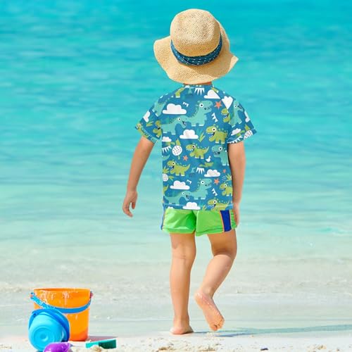 Blue Dino Girls Bathing Suit UV Protection Athletic Shirt Swimwear Beach Tops 3T 5