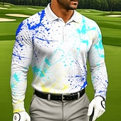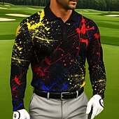 More information about Men's Golf Splash Ink Polo Long Sleeve Polo Shirts Lapel Sportswear Casual Athleisure Daily Wear 3D Print Buttons Spring Fall Winter Black White
