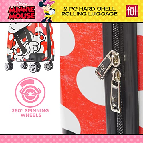 HOT ! FUL Disney Minnie Mouse Rolling Luggage, Hardshell Suitcase with Wheels, Polka Dots, Red, 2 Piece Set