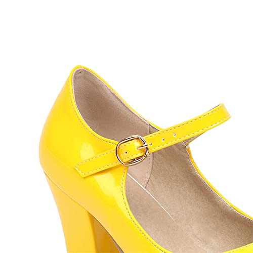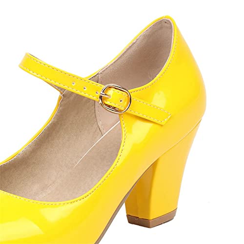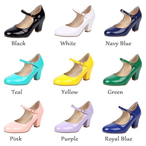 Elbslutt Women's Patent Leather Block Heel Mary Janes Retro Rockabilly Shoes Ankle Strap Chunky Pumps Work Office Dress Shoes 7