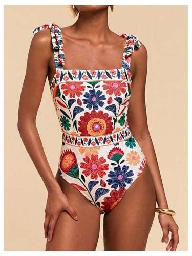 Floerns Women's One Piece Swimsuit Floral Bow Tie Shoulder Tummy Control Bathing Suit 1