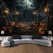 More information about Halloween Decorations Tapestry Jack O Lantern Pumpkin Decor Wall Art Large Hanging Tapestry Mural Decor Photograph Backdrop Blanket Curtain Home Bedroom Living Room Bat Haunted House Graveyard