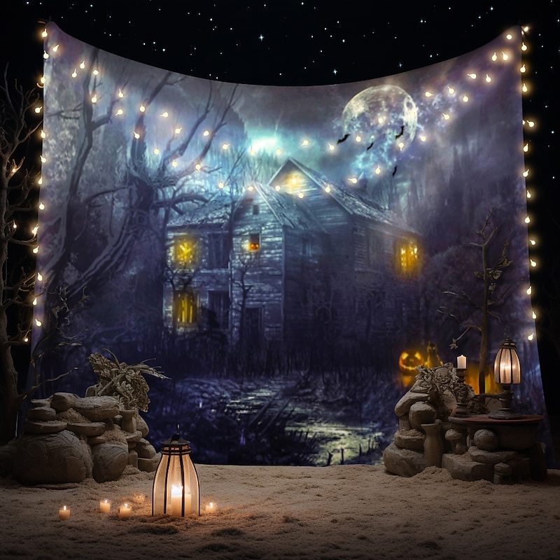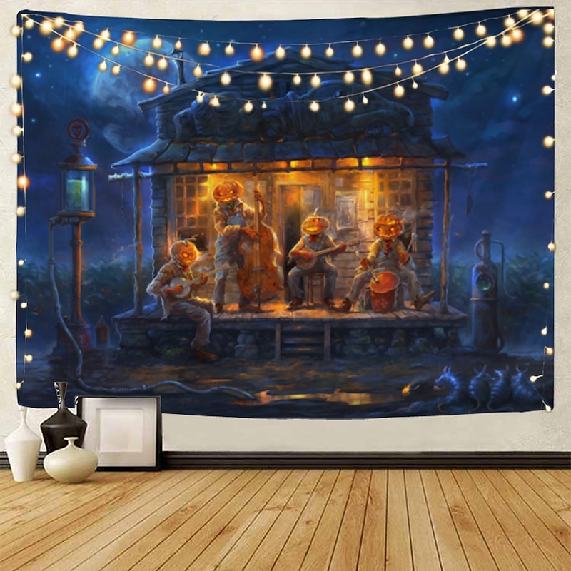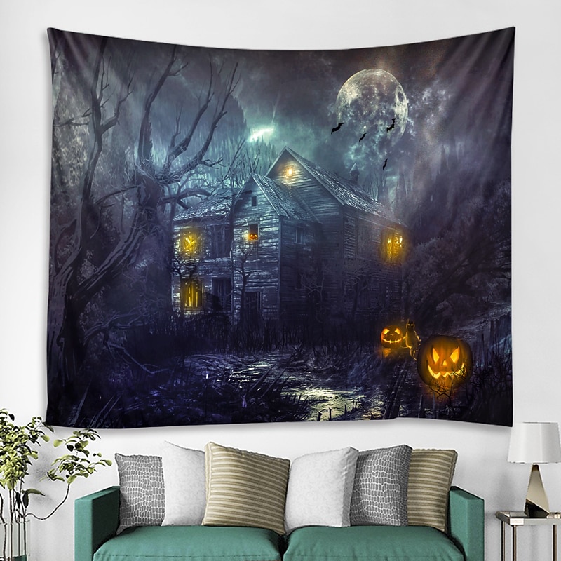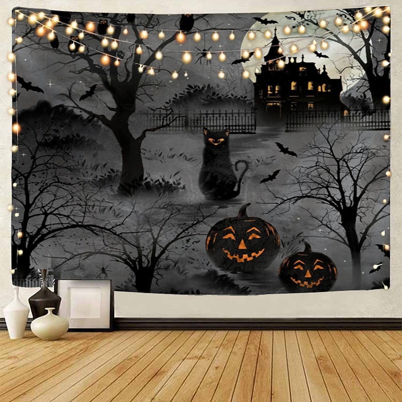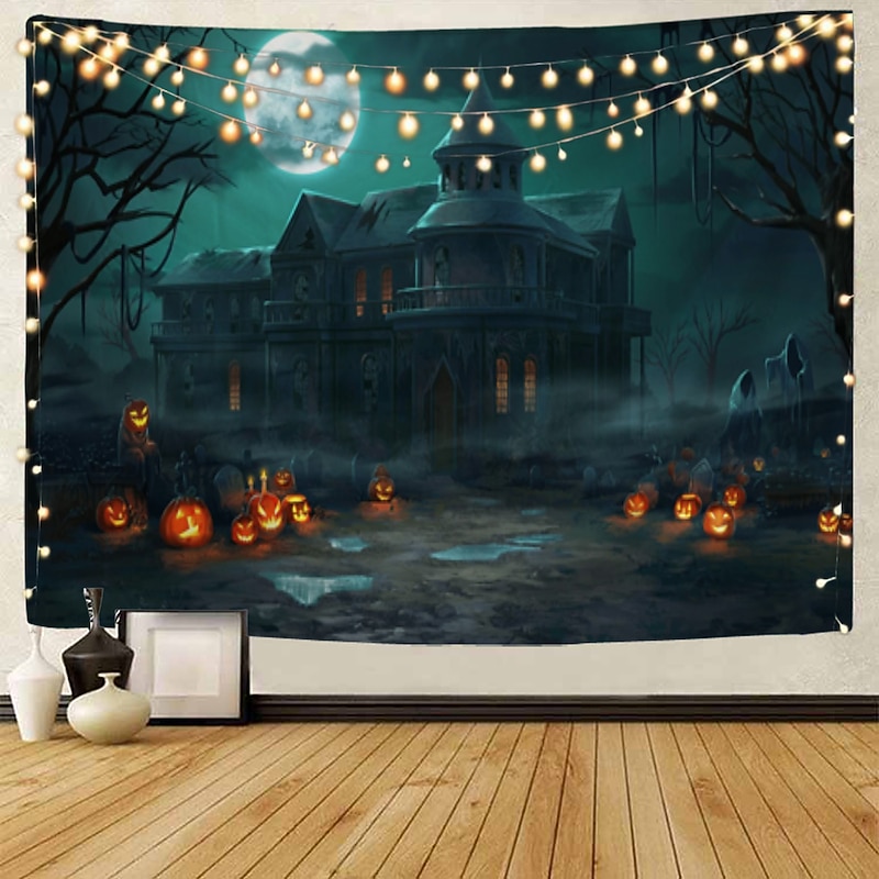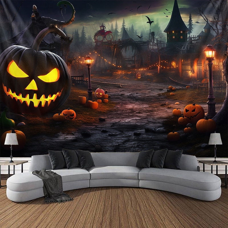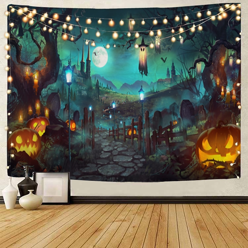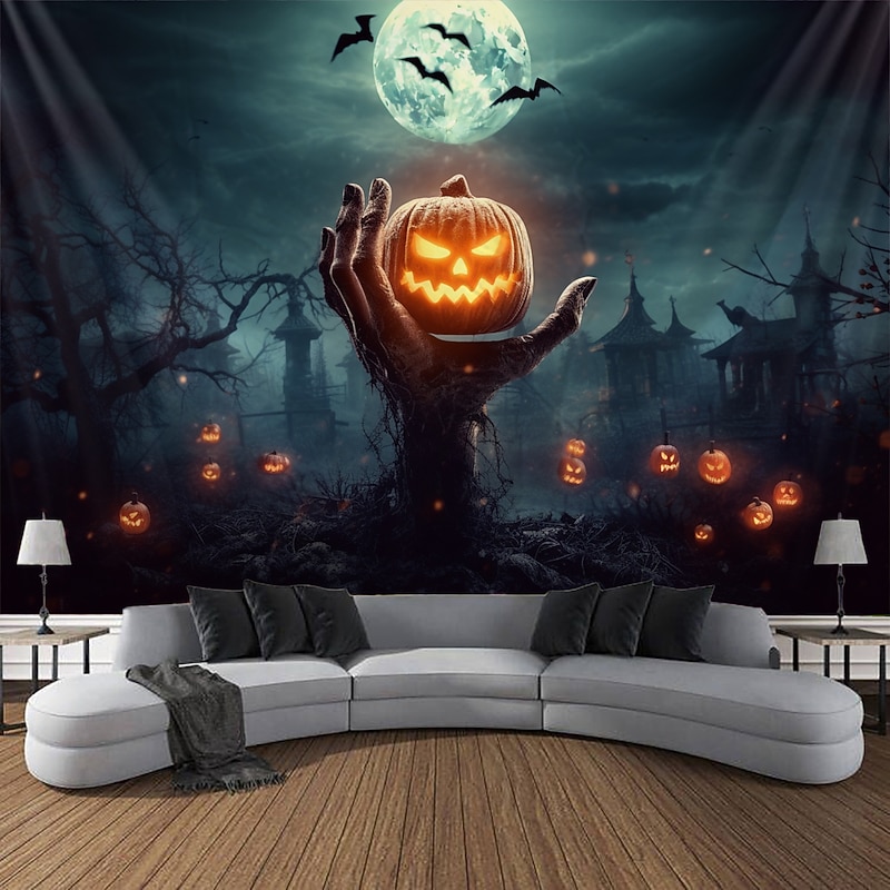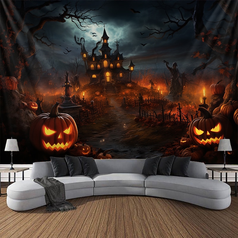 HOT ! Halloween Decorations Tapestry Jack O Lantern Pumpkin Decor Wall Art Large Hanging Tapestry Mural Decor Photograph Backdrop Blanket Curtain Home Bedroom Living Room Bat Haunted House Graveyard