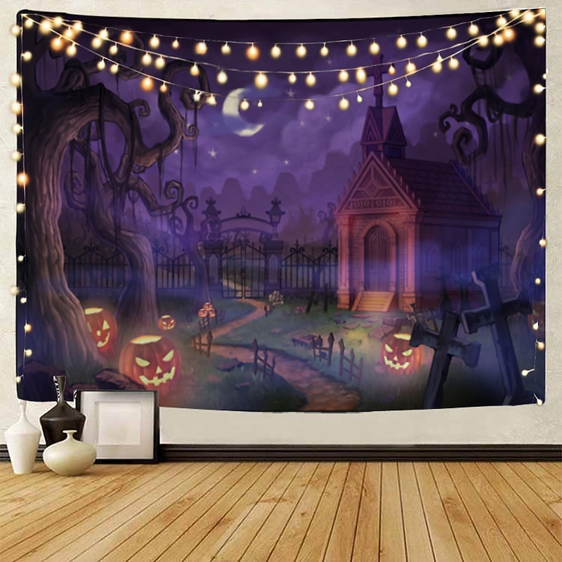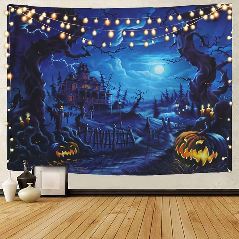 Halloween Decorations Tapestry Jack O Lantern Pumpkin Decor Wall Art Large Hanging Tapestry Mural Decor Photograph Backdrop Blanket Curtain Home Bedroom Living Room Bat Haunted House Graveyard 7