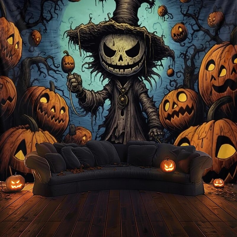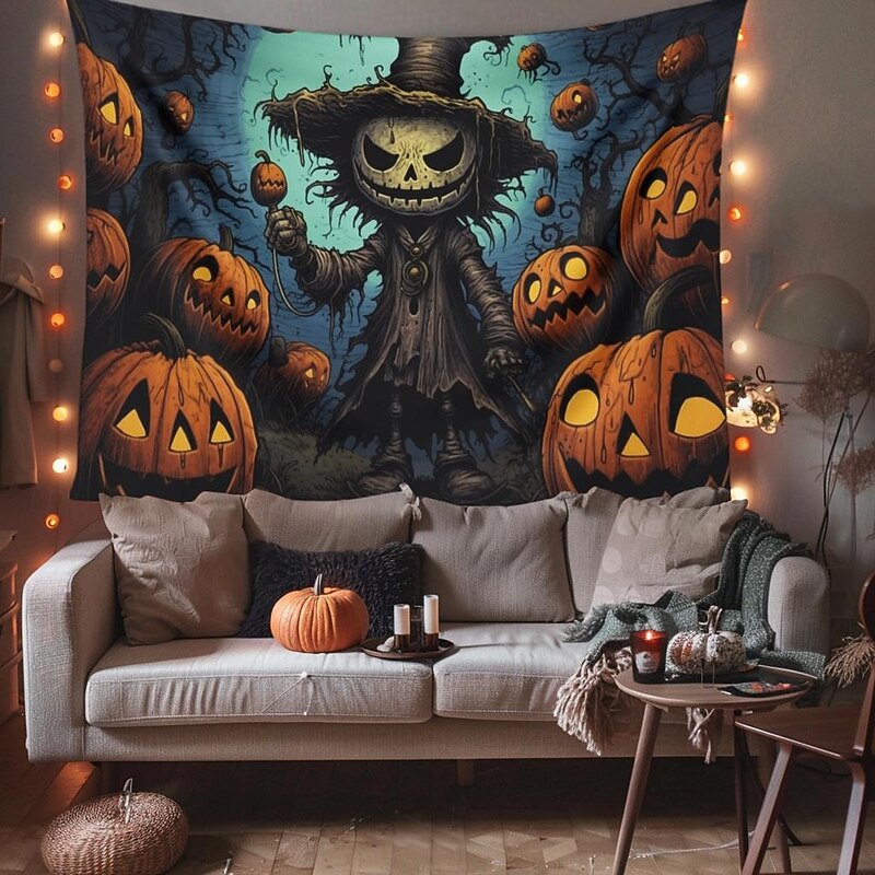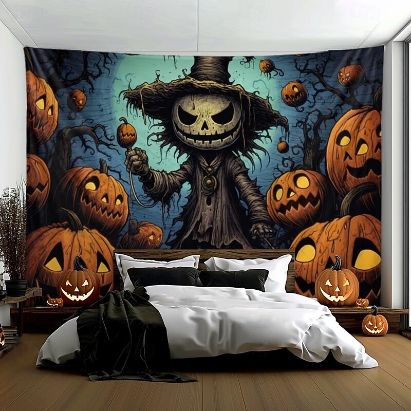 HOT ! Halloween Decorations Hanging Tapestry Scarecrow Pumpkin Wall Art Large Tapestry Mural Decor Photograph Backdrop Blanket Curtain Home Bedroom Living Room