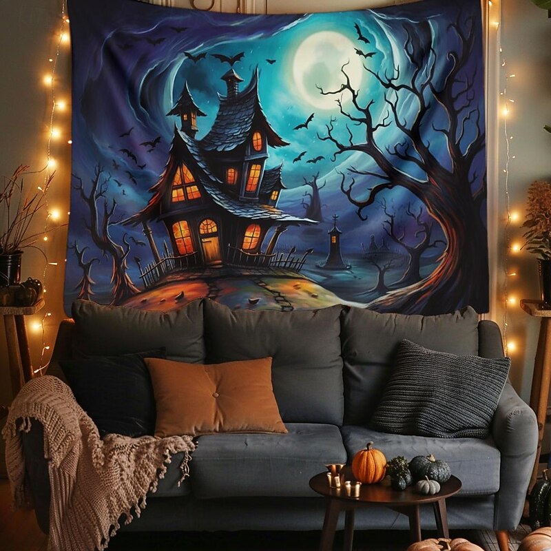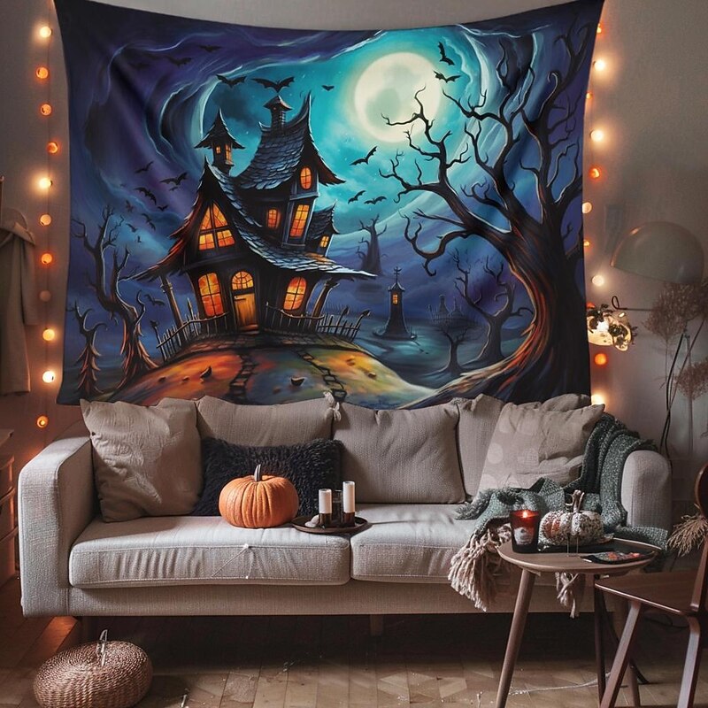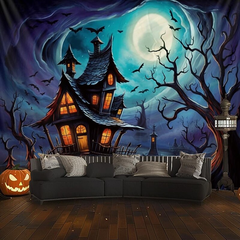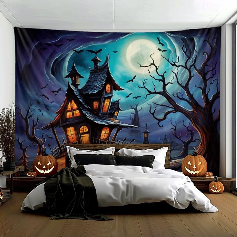 Halloween Decorations Hanging Tapestry Scarecrow Pumpkin Wall Art Large Tapestry Mural Decor Photograph Backdrop Blanket Curtain Home Bedroom Living Room 19